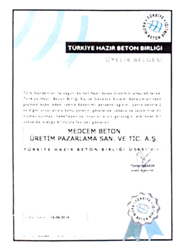 TÜRKİYE HAZIR BETON BİRLİĞİ ÜYELİK BELGESİ
