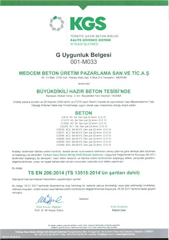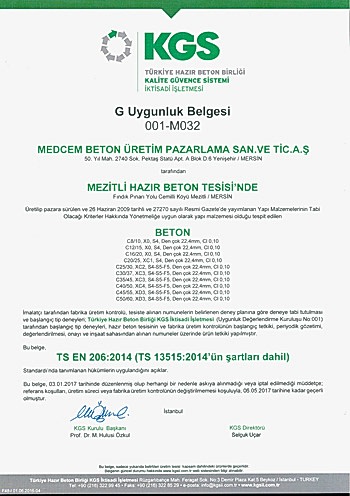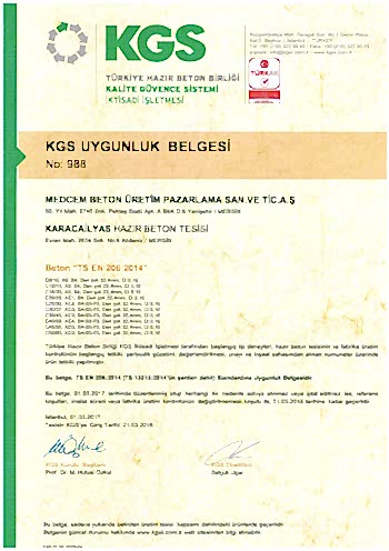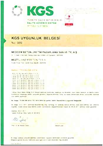 MEZİTLİ HAZIR BETON TESİSİ KGS UYGUNLUK BELGESİ