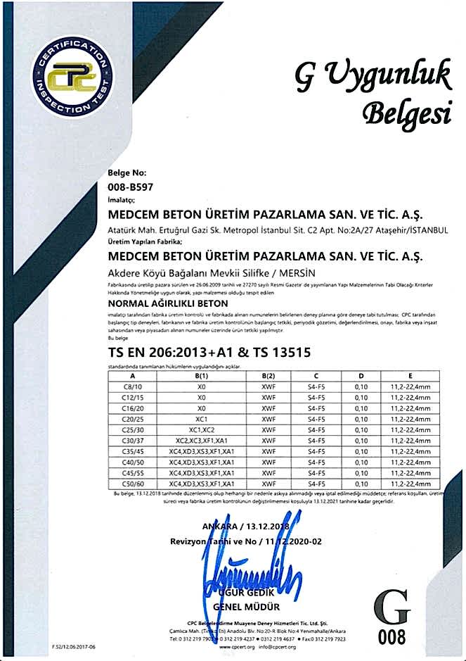 MEZİTLİ HAZIR BETON TESİSİ G UYGUNLUK BELGESİ